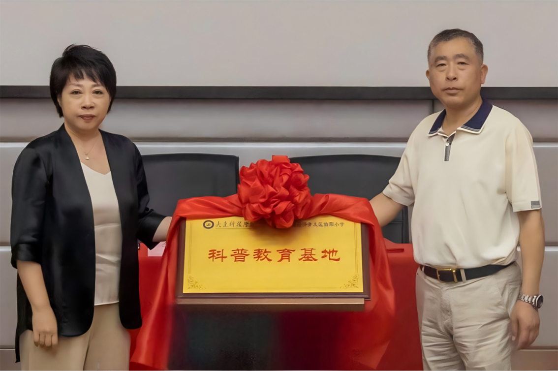 在与会师生的见证下,旅顺经济开发区伯阳小学校长李娜和beat365中文官方网站科研产业处处长韩德宝签署合作协议。双方领导共同为科普教育基地揭牌。