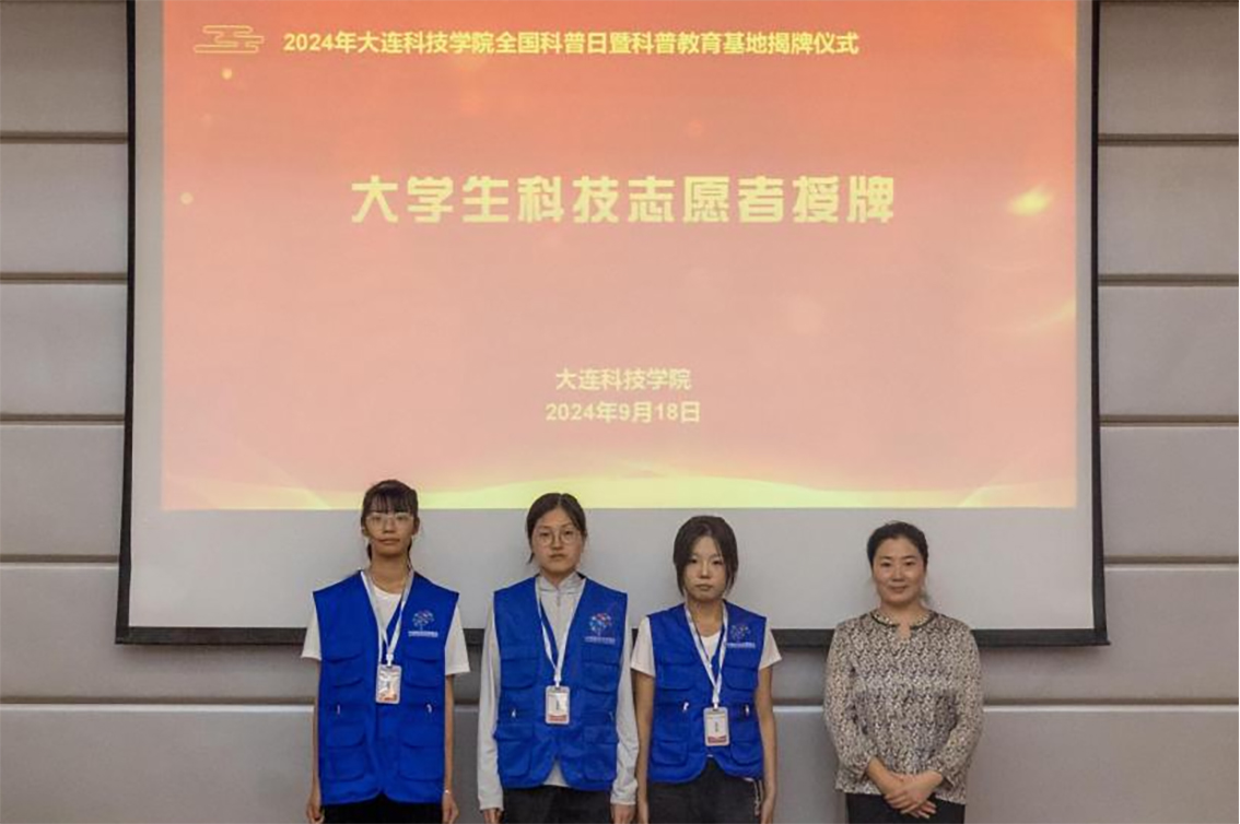随后,旅顺经济开发区伯阳小学主任李慧慧为大学生科技志愿服务站志愿者代表授牌。