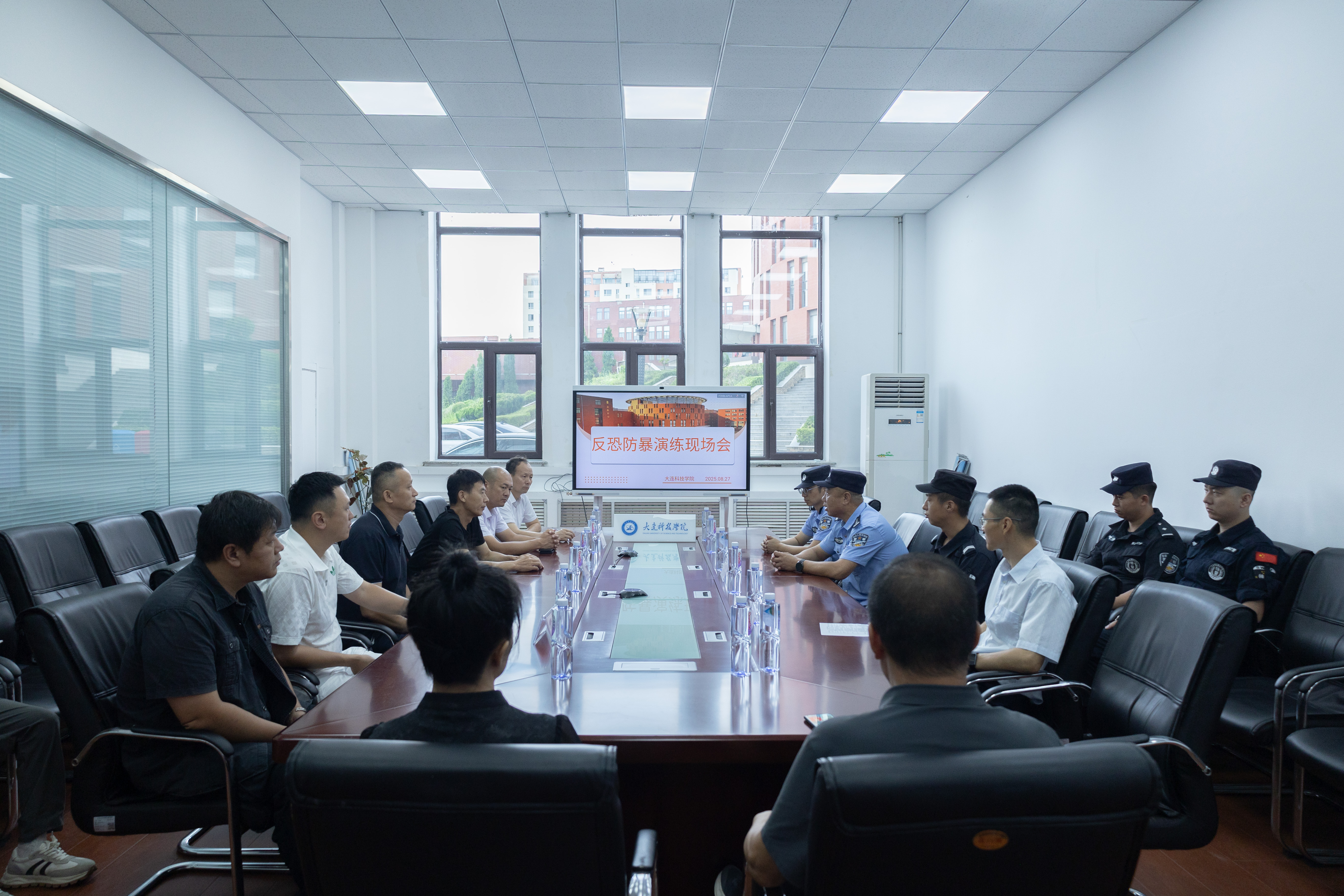 学校联合旅顺口公安分局内保大队、特警大队及辖区派出所,成功举办“反恐防暴实战演练”。大连交通大学、辽宁对外经贸学院、大连航运职业技术学院3所兄弟院校保卫处代表共同参加。演练以“三秒反应、三十秒处置”为黄金标准,针对持械闯入、群体暴力等场景开展全要素推演,通过防暴器械操作、车辆查控战术等专项训练,提升安保队伍快速响应能力。